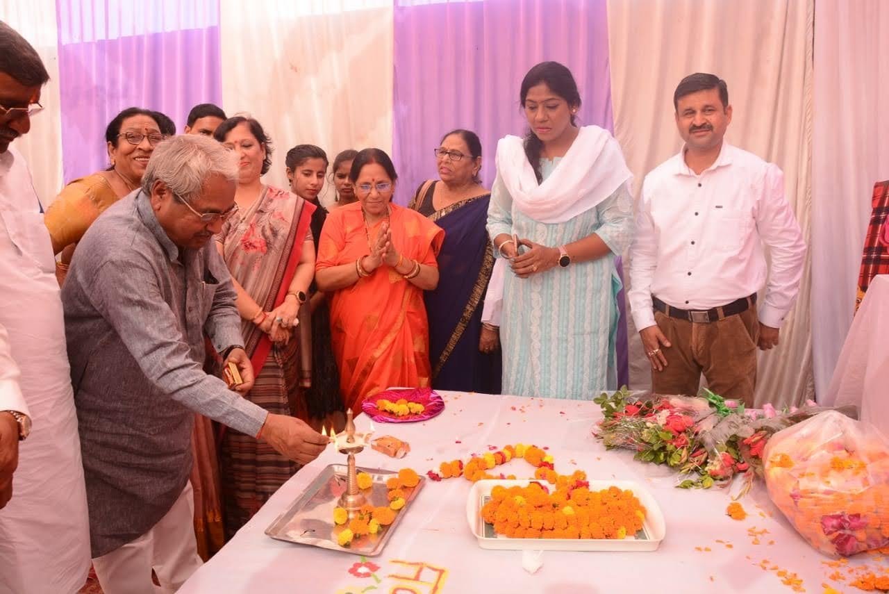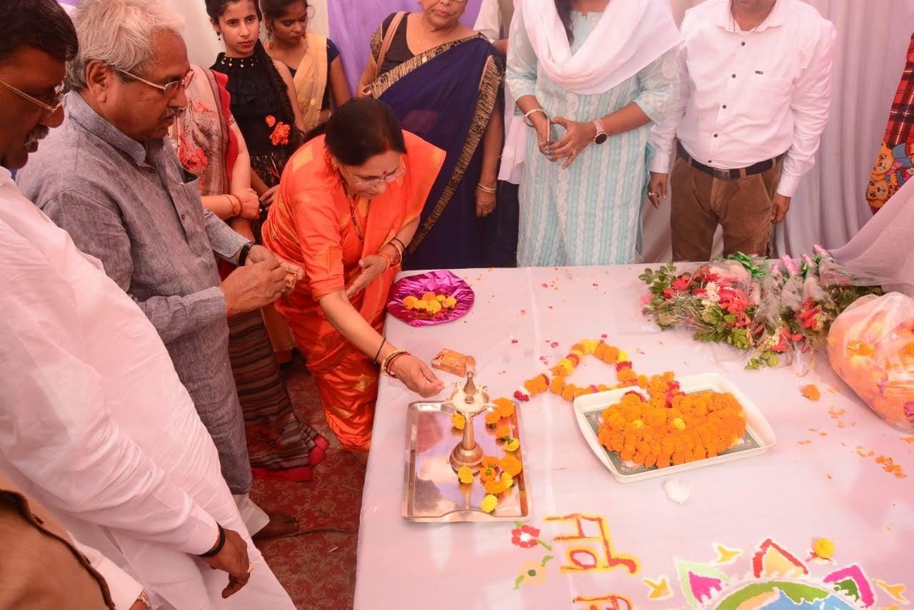 सर्व शिक्षा अभियान के तहत जिले में किए जाने वाले कार्यक्रमों की नगर विकास राज्य मंत्री श्री राकेश राठौर गुरु को जानकारी देते हुए संस्था की मंत्री डॉ. आरती श्रीवास्तव व अन्य।